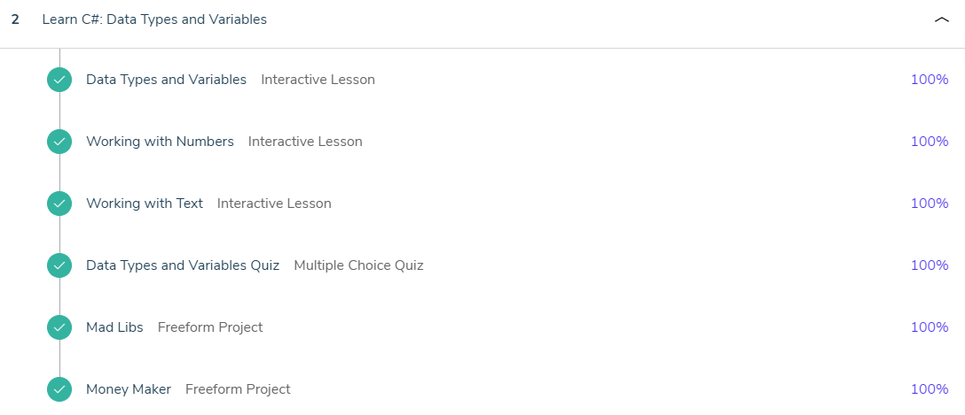 Today I spent a big chunk of time dedicated to completing Unit 2 of Learn C# from Codecademy. There were some struggles getting the last of the lessons down, but I stuck with it and soon figured out where I was going wrong. Coding is a very exact thing and I have to be sure I fully get my head around it, which is why I am going slow and trying to be thorough.