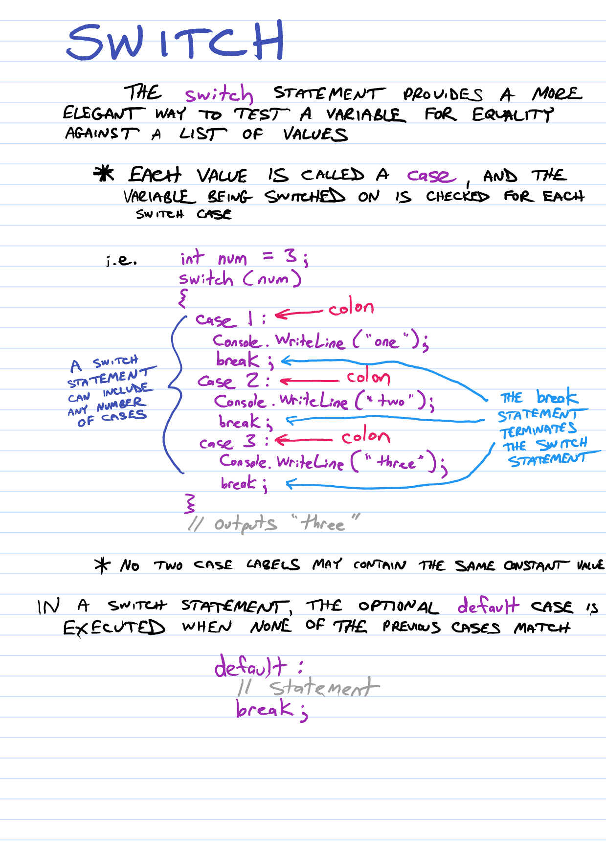 SoloLearn C# Tutorial – Basic Concepts : if-else & switch Notes