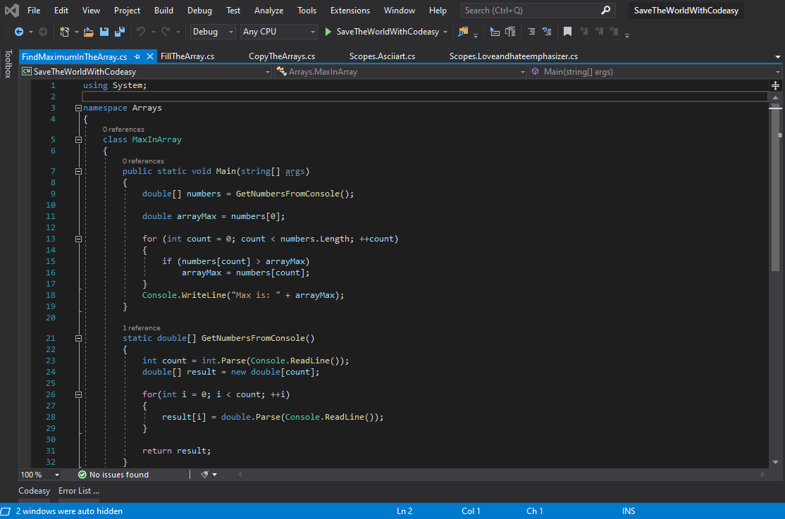 After learning how to put together a proper array yesterday, today I started actually working with them on various problems.