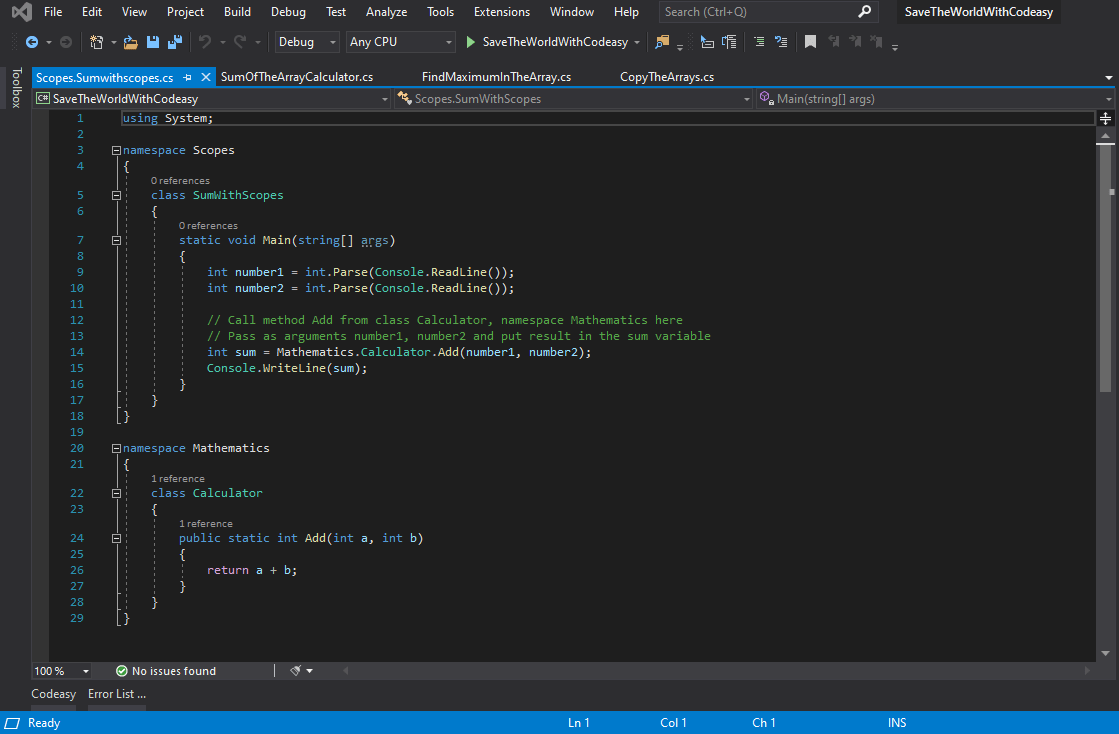 Having completed my introduction to arrays yesterday, today my attention was turned towards scopes and code structure.