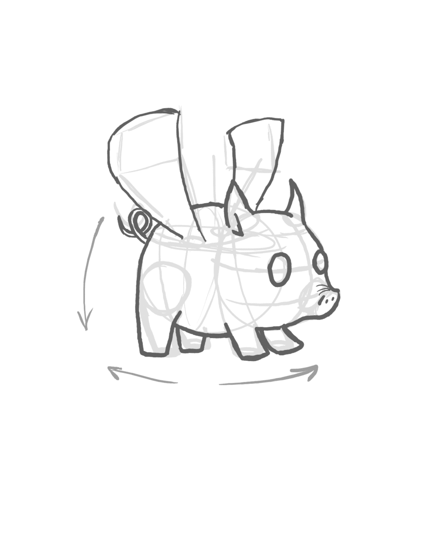 I began by sketching out the rough idea of the type of pig I was going for. Knowing the mechanics of how the flappy game works, I wanted to keep it tight and rounded. Therefore I decided to develop a small, stubby, rounded pig. Since I knew I was going to go for a more “comic” approach to the art assets, I wanted him to be cute and friendly.