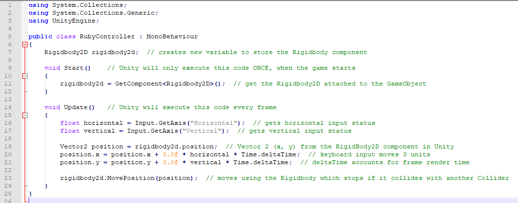 In order to simulate movement and object collisions, I had to learn how to use the Unity physics system. This gets implemented via a Rigidbody component attached to a GameObject.